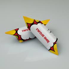 Własny nadruk na cukierkach warto zaplanować na zewnętrznej etykiecie. Niekiedy po wewnętrznej stronie umieszczany jest ciekawy aforyzm lub oryginalne hasło promocyjne.